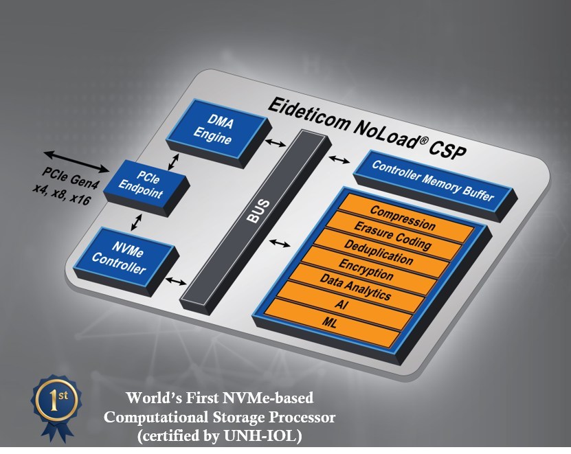 The Lustre/ZFS-based parallel filesystem leverages Eideticom’s NoLoad, aNVMe-based, Computational Storage Processor (CSP) for High Performance Computing (HPC), Eideticom said in a statement.