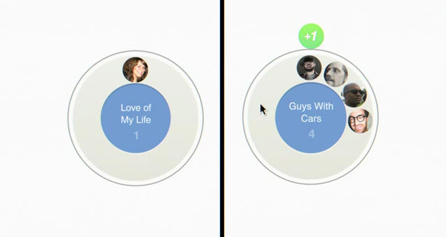 The users get a green-room view of Kyle and Lisa’s Google+ Stream. Kyle comes across Lisa, and right away slots her in the ‘Love of my life’ circle. Lisa, on the other hand, has to go through a few more Circles in life. She puts Kyle in Creepers, Book Club, Guys with cars, Ski house, Maybe, and then finally in the Keeper Circle. That is not very geometric, but quite a progression nonetheless.